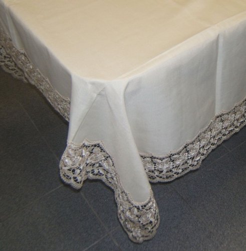Enhance any better occasion with this elegant Deluxe tablecloth Finely designed with a lace center and 6-inch lace border thats bound to dress up your room Set includes 12 matching napkins Features an elegant rich Deluxe white tablecloth with 12 matching napkins Heavy lace center with 6-inch lac