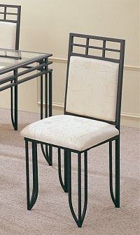 Set of 2 Matrix Style Sandy Black Finish Metal Dining Chairs This is a brand new in box Set of Two Modern Contemporary Matrix Style Dining ChairChairs in Sandy Black Metal Frame and Ivory Damask Covered Back and Seat Cushions The fabric has a modern accent imprint pattern and makes a great additi