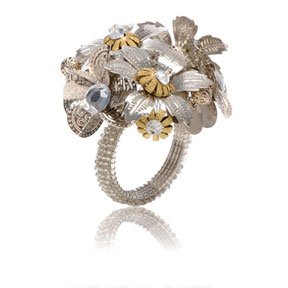 Discount Black Friday Kim Seybert Antique Flower Set of Four Napkin Rings - Crystal/Silver/Gold